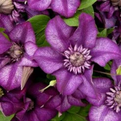 variété buissonnante, fleurs violettes toujours doubles. C’est une cousine des florida.